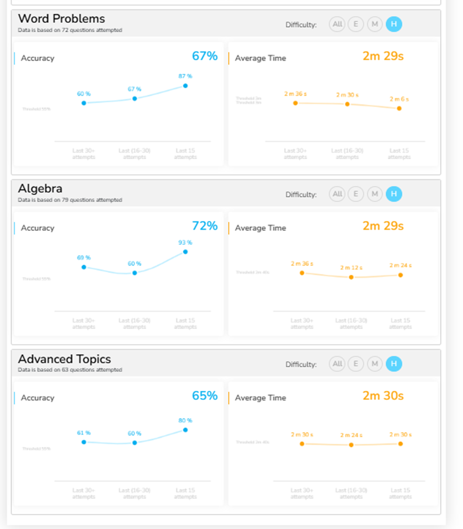 For Advanced Topics, the e-GMAT modules broke down intimidating concepts into digestible building blocks. The variety of questions available on e-GMAT Scholaranium was all-encompassing. Through repeated practice, I identified the 10-12 question patterns that kept recurring and made sure I could nail those consistently. My hard accuracy in algebra climbed from 69% to 93%.