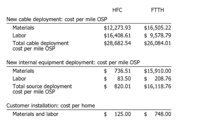 | Labor expenses comprise the majority of the costs associated with the new cable deployment for HFC. | ||