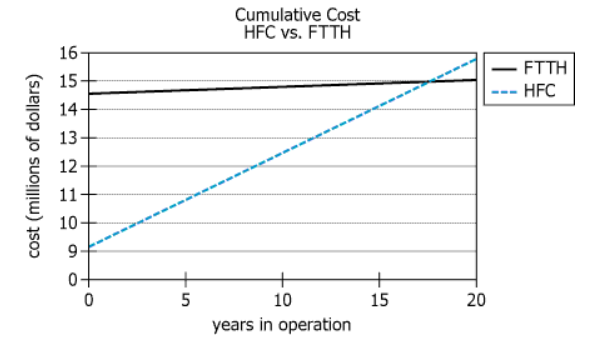 | If the town only considers cost over the first 20 years, the FTTH option is best. | ||