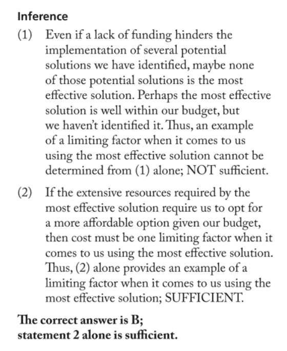 Sufficiency: While Statement (1) mentions a lack of funding, it does not directly address whether one of the identified solutions is the most effective or whether the lack of funding is preventing the implementation of that particular solution. It only indicates a general funding issue, not the relationship between the most effective solution and the available budget.