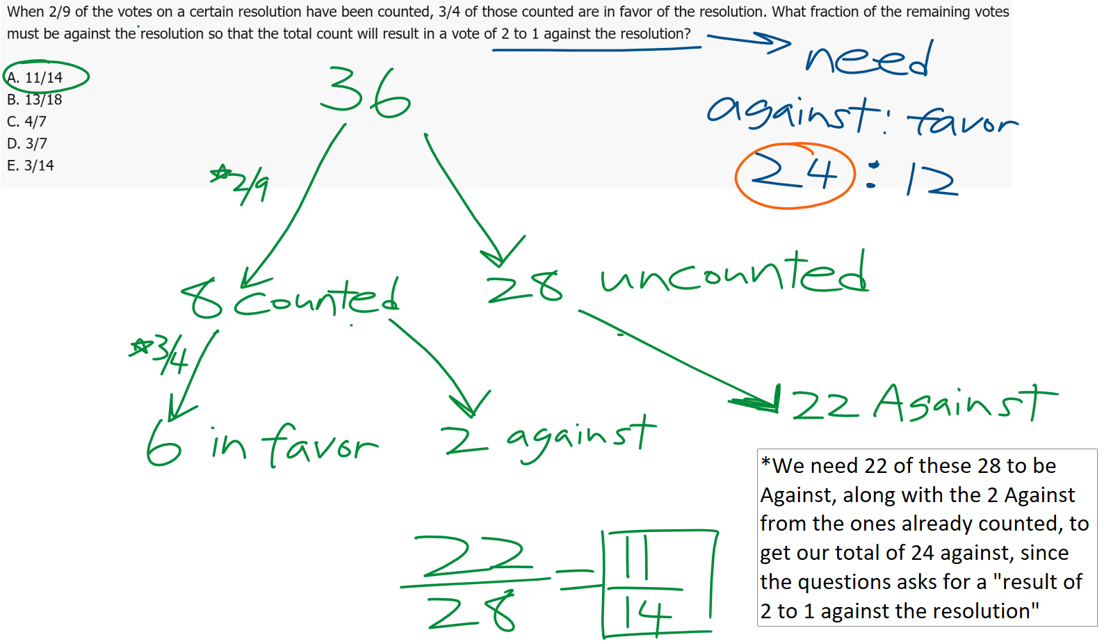 For the final ratio to be 2:1 AGAINST the resolution, we need there to be 24 votes AGAINST and 12 votes in FAVOR