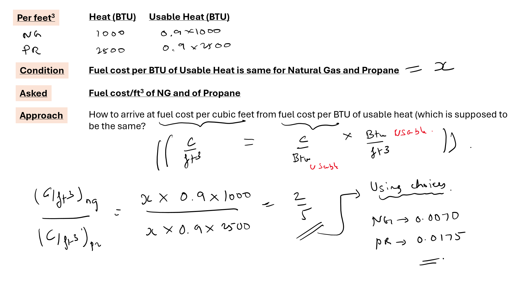 Thus, to keep the cost per BTU the same, the cost per cubic foot of propane must be 2.5 times the cost of a cubic foot of natural gas.