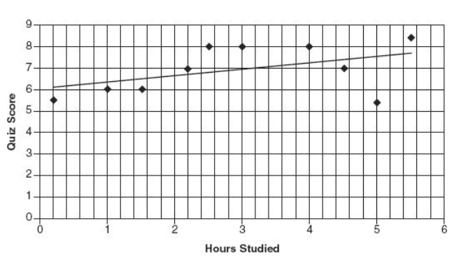 (B) There are three students who studied for less than 2 hours, the 3 points in the lower left. Two of these students scored a 6, but none scored above 6.