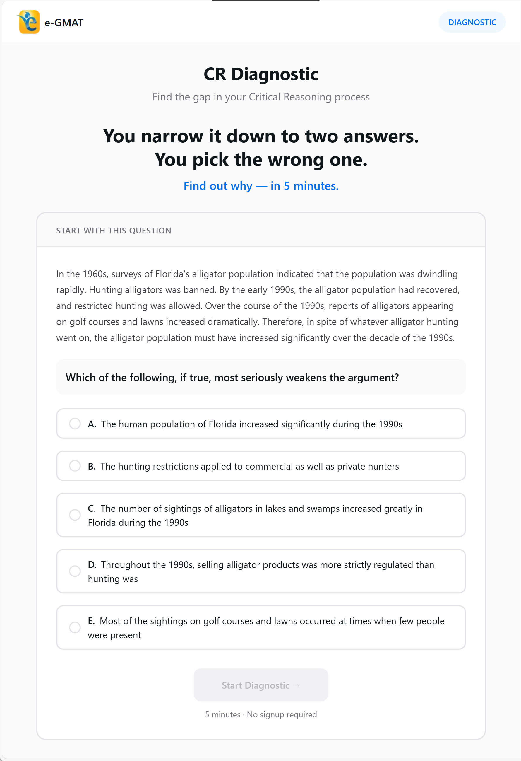 We built a free diagnostic that finds your gap in 5 minutes.You solve one real CR question. Based on